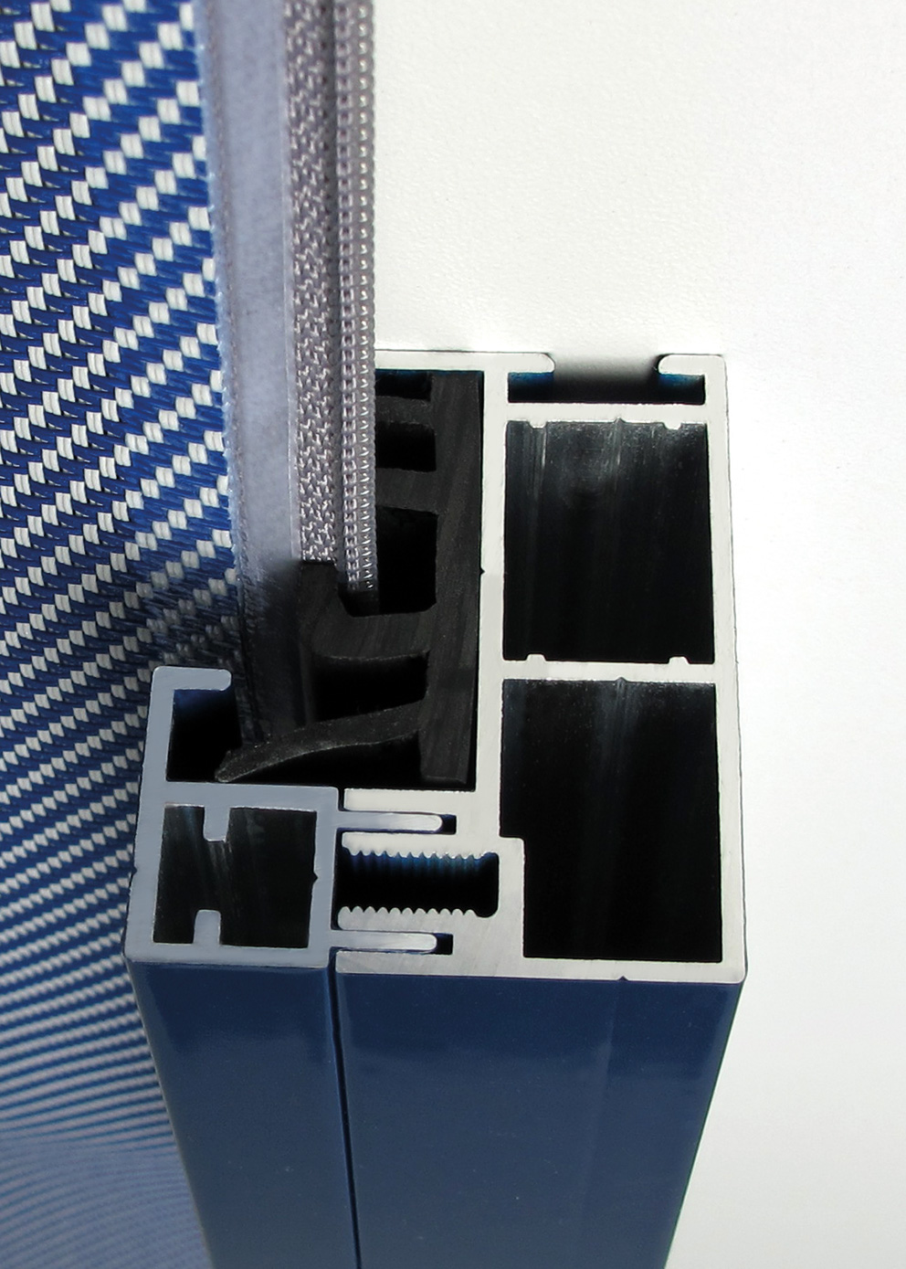 Die textilen Behänge sind UV-beständig sowie wasser- und schmutzabweisend und damit optimal für den dauerhaften Einsatz im Außenbereich geeignet. Kästen und Führungsschienen bestehen aus stranggepresstem, pulverbeschichtetem Aluminium und überzeugen durch ihre große Formen- und Farbvielfalt sowie durch hohe Stabilität und Langlebigkeit.